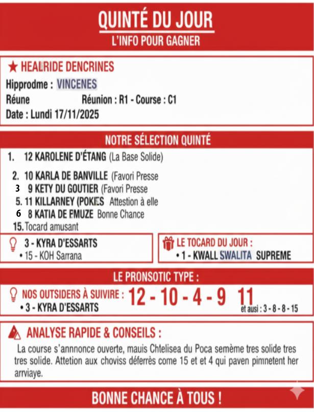 pronostics quinté du 17/11/2025